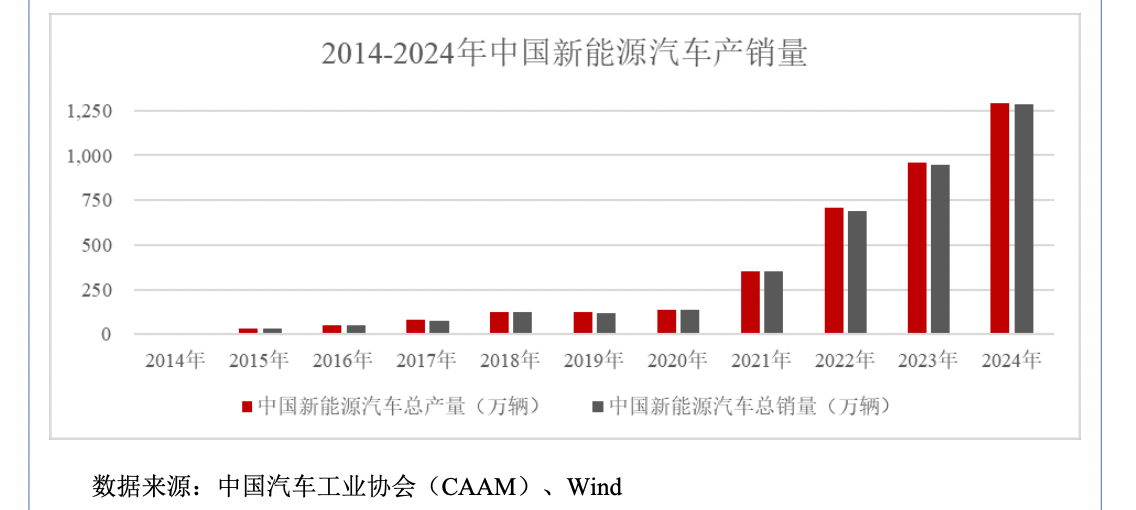此外,我国陆续出台多项产业政策,从生产供给、消费需求、配套基础设施等多方面鼓励新能源汽车行业发展。在产业政策的支持下,我国新能源汽车行业在过去几年内经历了飞速的发展,正在从萌芽期向成长期快速迈进,同时行业产销量在5年之间增长近8倍。2024年,我国新能源汽车销量达到1,286.6万辆,同比增长35.5%,新能源汽车渗透率达到40.9%。在当前科技和产业变革的背景下,新能源汽车已经成为国内乃至全球汽车产业转型升级的中坚力量,新能源汽车行业也迎来了前所未有的发展机遇。
