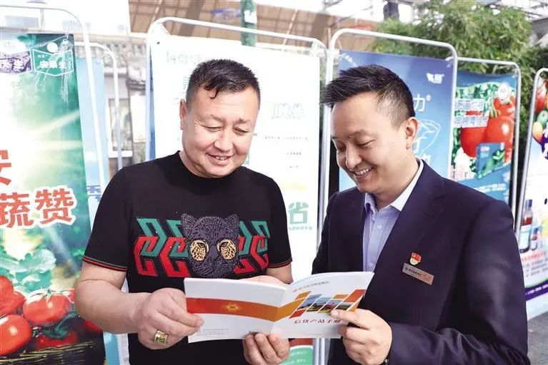 贺兰农商行在农资销售会上推介信贷产品,以“金融+场景”精准助力产业消费“双升级”。