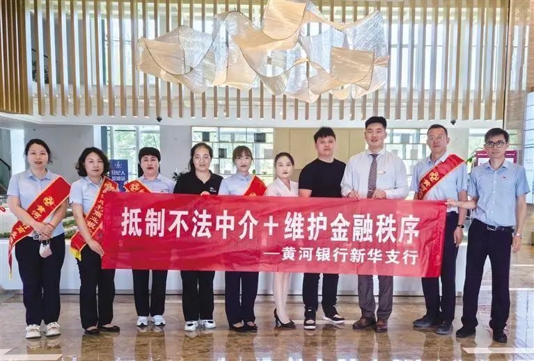 黄河农村商业银行新华支行与楼盘销售中心联合开展金融宣传活动。